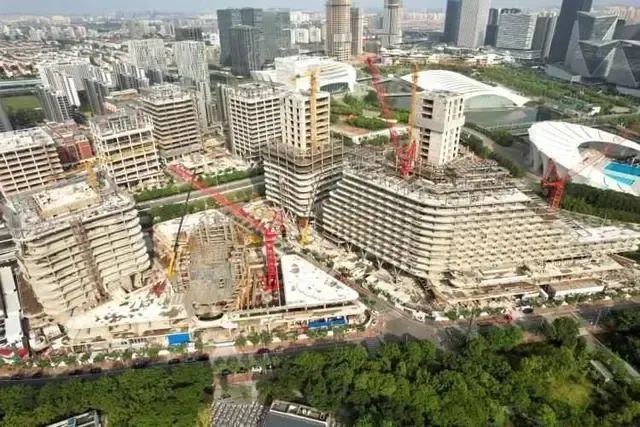 T2、T3辦公樓均為17層,地上建筑面積7.5萬平米,高度為78.5米。H1酒店為13層的五星級(jí)超奢酒店-華爾道夫,地上建筑面積3.46萬平米,高度為61.85米。C2共1層,高度為6米。
